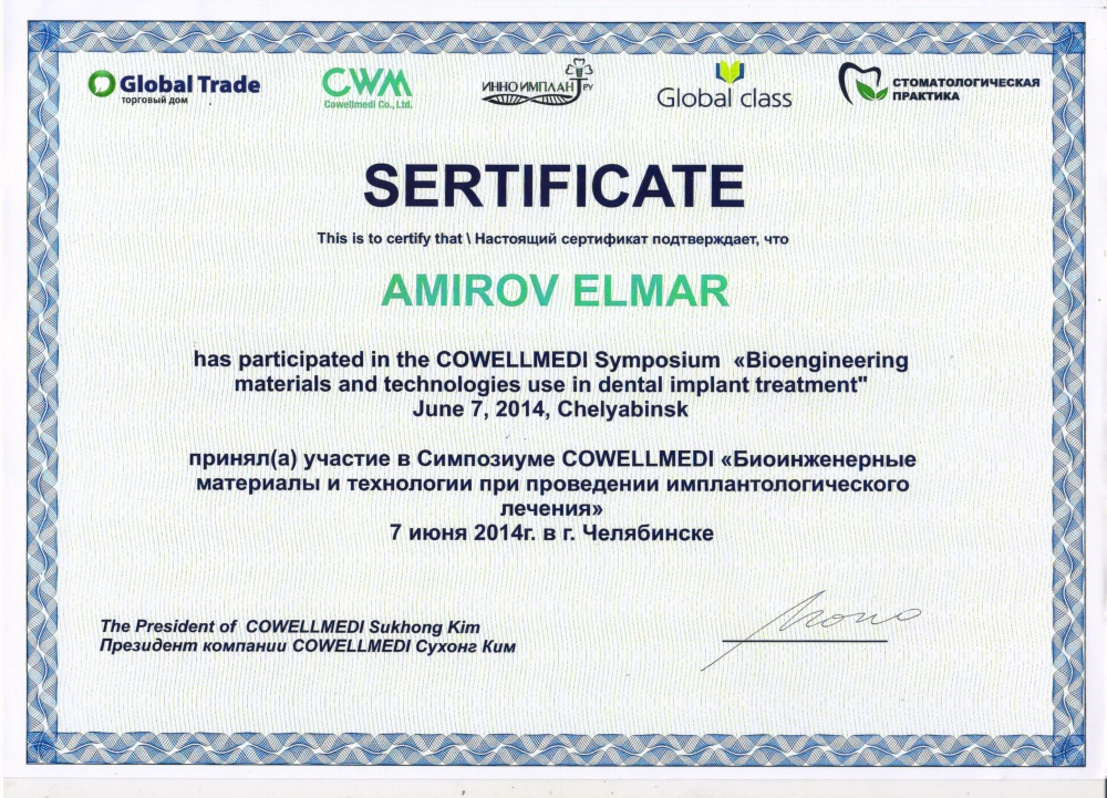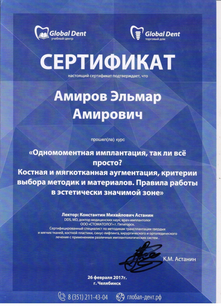 Отличный стоматолог - имплантолог Эльмар Амирович в клинике Мечта, всем знакомым рекомендую кому нужна имплантация зубов.Рада что попала к нему. Отлично выполнил свою работу.