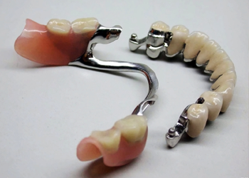 Протез уникален, поскольку создаётся индивидуально для вас. Вид изделия зависит от количества утраченных зубов и состояния оставшихся, а также состояния прикуса и вашего возраста. Опорные зубы закрывают коронками, а на внутреннюю сторону некоторых зубов крепится металлическая дуга. Она служит своеобразным фиксатором и значительно снижает подвижность. Опорой протеза являются многозвеньевые кламмеры, которые закрепляются на каждый зуб.